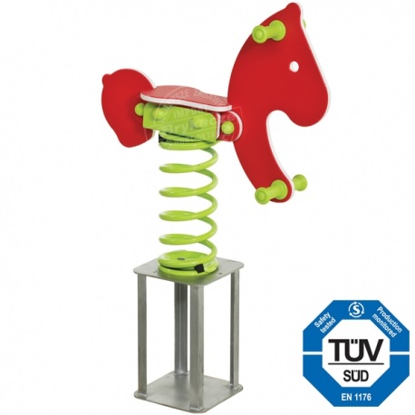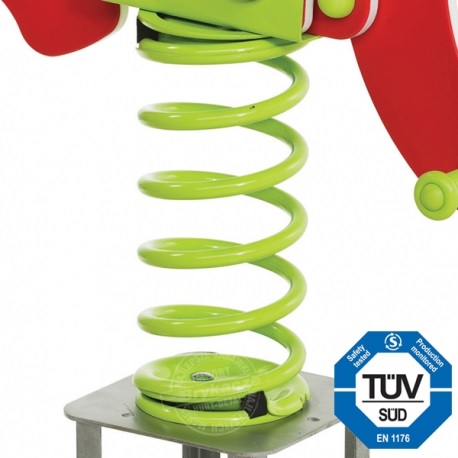 Komplet za samostalnu montažu. Paneli izrađeni od HDPE (polietilen visoke gustoće) ploče, sve debljine 19 mm. Površina panela je otporna na ogrebotine i vremenske uvjete. Paneli imaju grafičke printove. Ojačane ručke i oslonci za noge, s protukliznim profilom u skladu s najnovijim standardom EN 1176. Opružna klackalica također je postavljena na posebne metalne baze. Najkvalitetnija opruga s kompletom za sastavljanje, praškasto lakirana i testirana na 500.000 ciklusa. Svi metalni konektori zaštićeni su posebnim plastičnim čepovima, što značajno poboljšava estetiku i sigurnost uređaja. Upute za uporabu opružne klackalice uključene su uz kupnju.