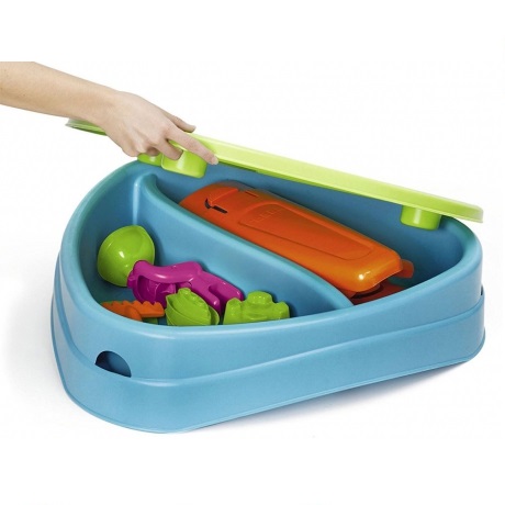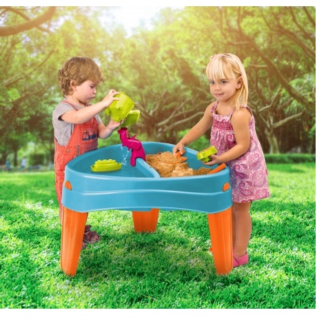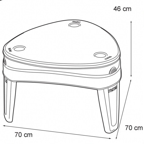 FEBER Water Table with Cover 4in1 Sandbox Desk Piknik stol s dodacima  renomirane  tvrtke Feber  neodvojivi je element svakog igrališta, kako kod kuće tako i na javnom mjestu. Stol ima  dvije komore  u koje možete sipati pijesak ili sipati vodu. Osim toga, u središnjem dijelu stola djeca će pronaći  mlinac  koji će zabavu učiniti još privlačnijom. Cijela stvar je dizajnirana za najmlađu djecu, zahvaljujući čemu  stol ima zaobljene rubove. Nakon stavljanja navlake,  set se može koristiti kao stol za crtanje,  ima udubljenja, npr. za bojice. Pješčanici  Feber  izrađeni su od visokokvalitetni materijali  s  pažnjom na najsitnije  detalje. Plastika je prekrivena UV premazom koji će dugo zadržati kvalitetu boja. Pješčanici se mogu kombinirati s drugim igralištima ili vrtnim kućicama, stvarajući jedinstveno mjesto za dječju igru.