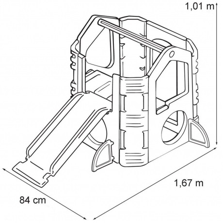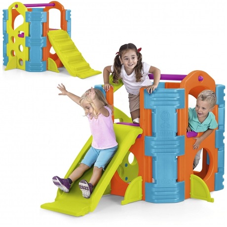 Feber Playground Activity Center je fantastičan set za kreativnu igru. Proizvedeno na temelju najnovijih tehnologija i najviših sigurnosnih standarda. Šareno igralište opremljeno je toboganima, zidom za penjanje, rupama kroz koje djeca mogu proći te širokim, udobnim stepenicama. Fantastična zabava zajamčena!