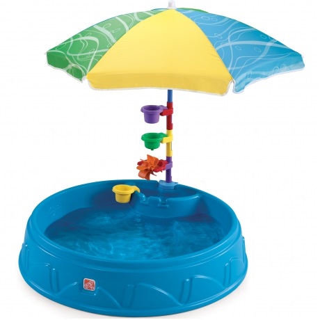 Vrtni bazen za djecu sa suncobranom renomiranog brenda Step2 savršeno je rješenje za vruće dane! Čvrsta i izdržljiva konstrukcija osigurava sigurnu zabavu na otvorenom. Bazen je opremljen šarenim suncobranom koji će djeci praviti hlad za vrućih dana. Stup kišobrana služi za pričvršćivanje pribora pričvršćenog za bazen, poput cjedila ili mlina za vodu. Dno bazena ima neklizajući reljef koji omogućuje prianjanje malim stopalima. Na rubovima bazena nalazila su se i dva pravilno profilirana sjedala. Maksimalno opterećenje svakog od njih je 23 kg. Bazen za igru i hladovinu sadrži oko 45 L vode ili oko 75 kg pijeska.
