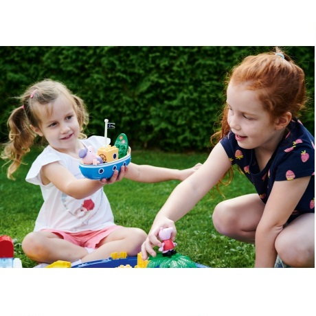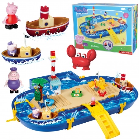 Set Peppa Pig Holiday BIG Waterplay spajazabavu s užitkom boravka u vodi. Polijevanjem vodomdijeteizazivakretanječamciu kanalima. Vodeno strujanje u kanalu može se dobiti i pokretanjem vodenog kotača.